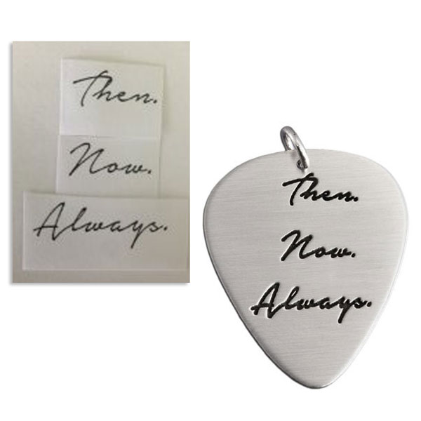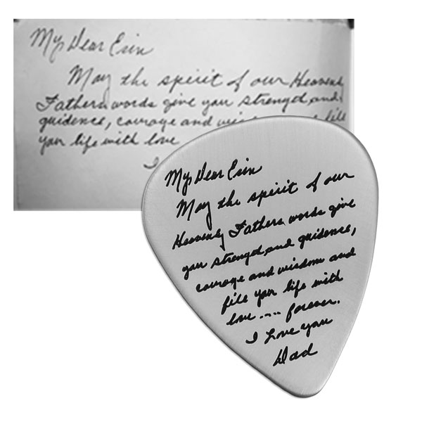 For example, we have done one large word on a silver handwriting guitar pick and it looked great.