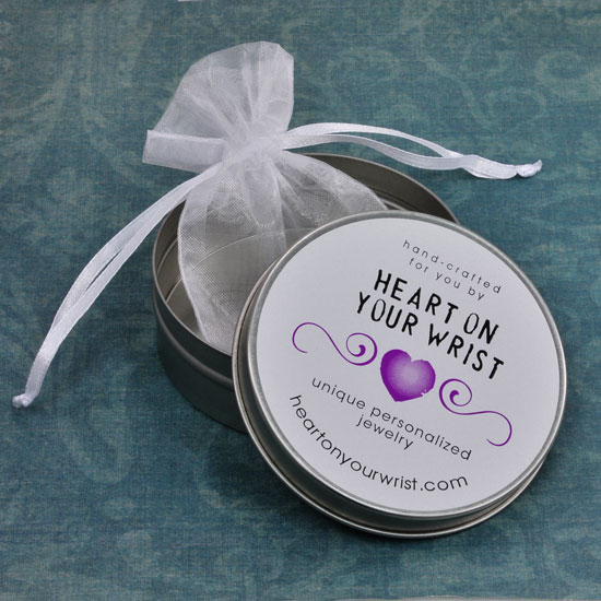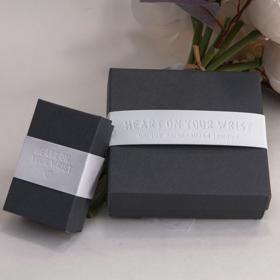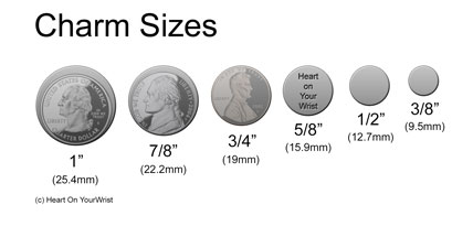 - Choose a date stamped on the edge of the charm or up to three words with a heart stamped across